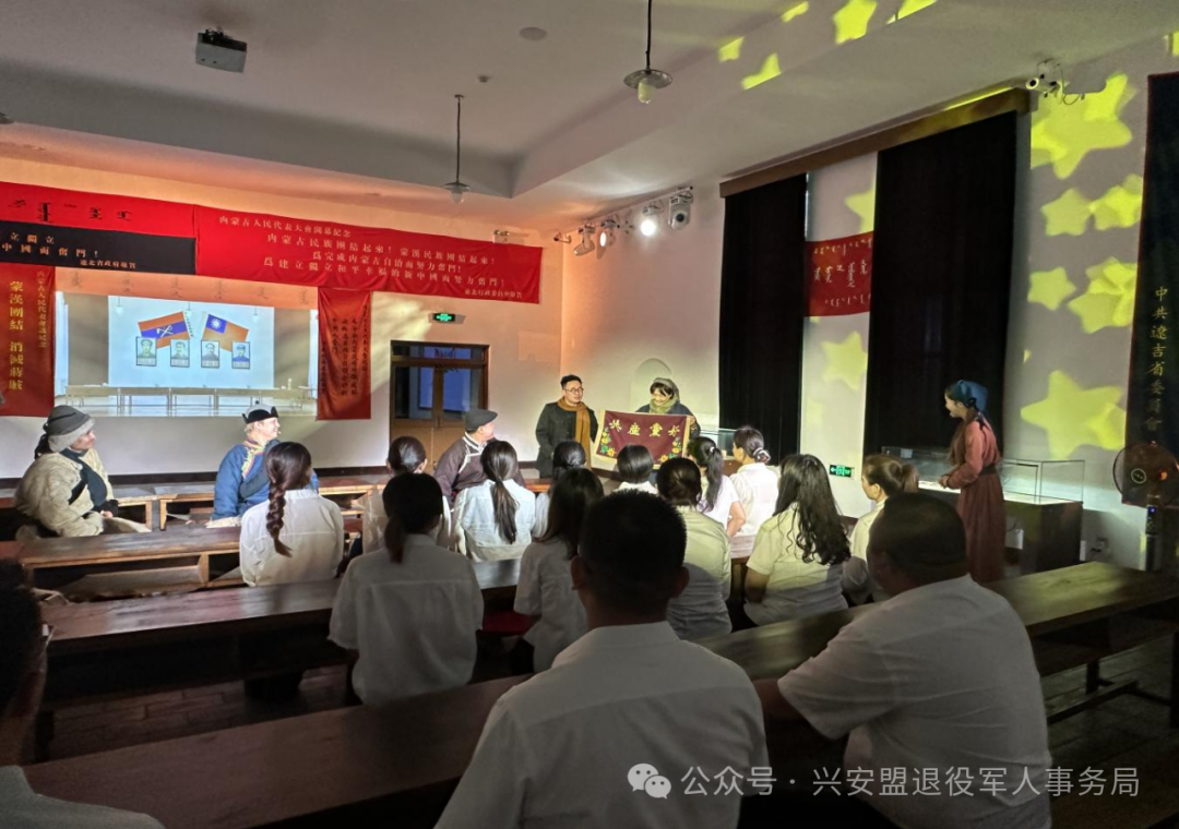 在五一会址,党员干部集中观看了红色情景剧《五一大会》,共同穿越时空之旅,沉浸式重温了内蒙古自治政府成立盛况,共同回顾内蒙古各族人民在党的领导下团结奋斗,走向民族解放和区域自治的那段峥嵘岁月,深刻感受了革命先辈们的伟大精神,进一步激发了大家的爱国情怀和奋斗热情;在现场,全体人员高声齐唱《没有共产党就没有新中国》,深切表达对党的无限热爱和感恩之情。随后,大家认真聆听红色故事《谨以萤火之光,破晓暗夜之曙——李大钊同志的故事》,激励大家在缅怀中汲取不竭动力,在纪念中传承不朽精神,继续在新时代的长征路上奋勇前行。
