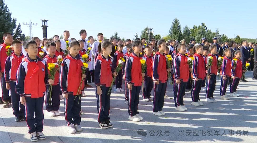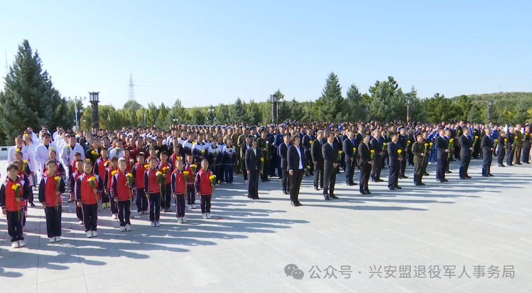 方阵前,盟委、人大工委、行署、政协、兴安军分区以及各民主党派、无党派人士和各族各界代表所献的花篮一字排开,花篮红色缎带上书写的“人民英雄永垂不朽”格外醒目。